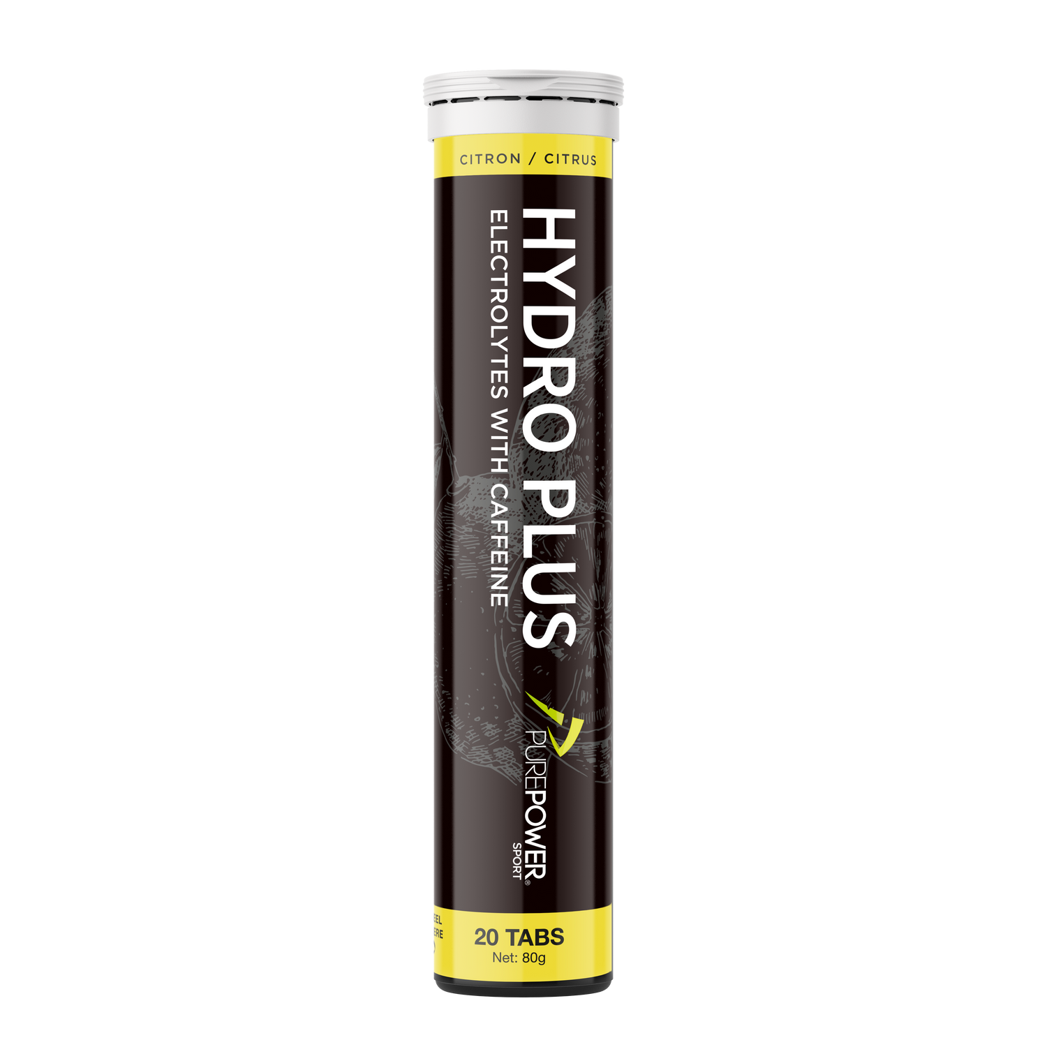 HYDRO Plus brusetabletter med vitaminer, mineraler og koffein. Citrussmagen tilfører et strejf af friskhed til dit væskeindtag under træning og konkurrence – uden unødige kalorier. HYDRO Plus brusetabletter giver vandet i din drikkedunk en frisk, naturlig smag.